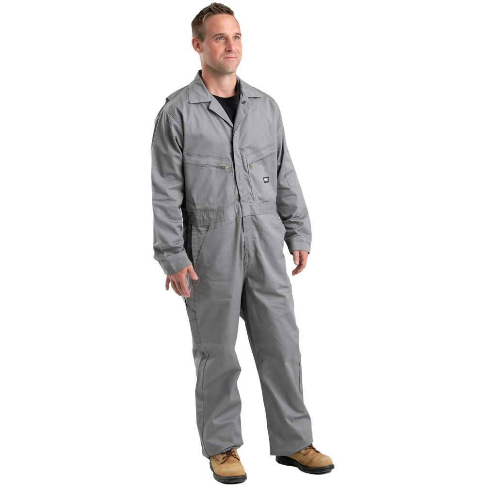 This coverall is made with 7.0 oz. 88% cotton, 12% nylon flame resistant twill fabric and has a two-way fame resistant brass front zipper with non-locking slider at top for quick removal. It also has concealed snaps on lapel along with two chest pockets with FR zippers for storage. Furthermore, there is two front swing pockets with side openings and adjustable cuffs with concealed snaps. The four-needle stitching on waistband with elastic inserts makes this item’s durability match the comfort provided by the pleated action back. Additional strength is provided by the reinforced bartacks at all stress points.