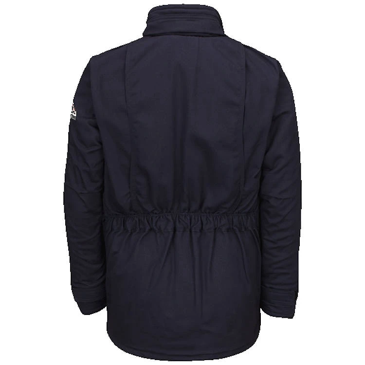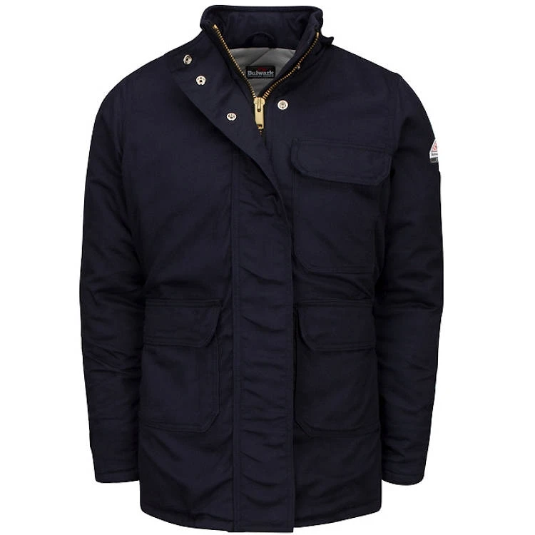 - Two-way, separating, heavy-duty Nomex®, taped brass zipper, fully covered with insulated storm flap, concealed snap closure