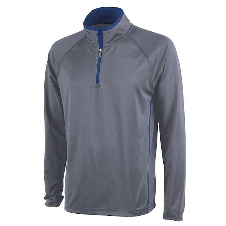 - Quarter zip pullover with stand-up collar and chin guard