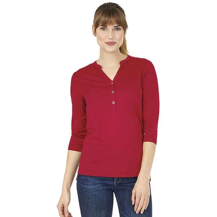 - 100% Polyester Interlock for solid color henley (4.42 oz/yd², white color is 5.31 oz/yd²)
