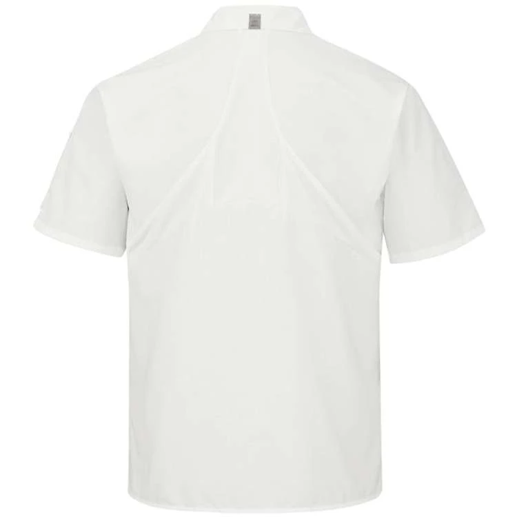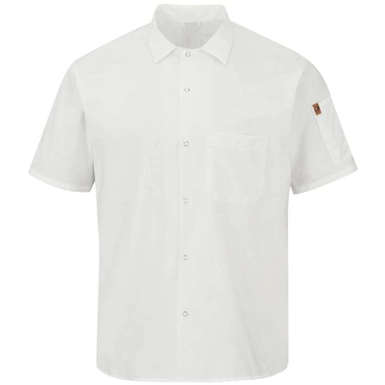 You won’t find a more qualified shirt to wear in the kitchen. Our Cook Shirt with MIMIX and OilBlok Technology will keep you comfortable and performing at your best all day, while repelling oils and keeping stains from setting in. This shirt features tough ripstop fabric with Touchtex™ technology for superior color retention, soil release and wickability. Our Cook Shirt does all this while retaining a professional appearance with a clean-looking six-gripper front and thermometer pocket.