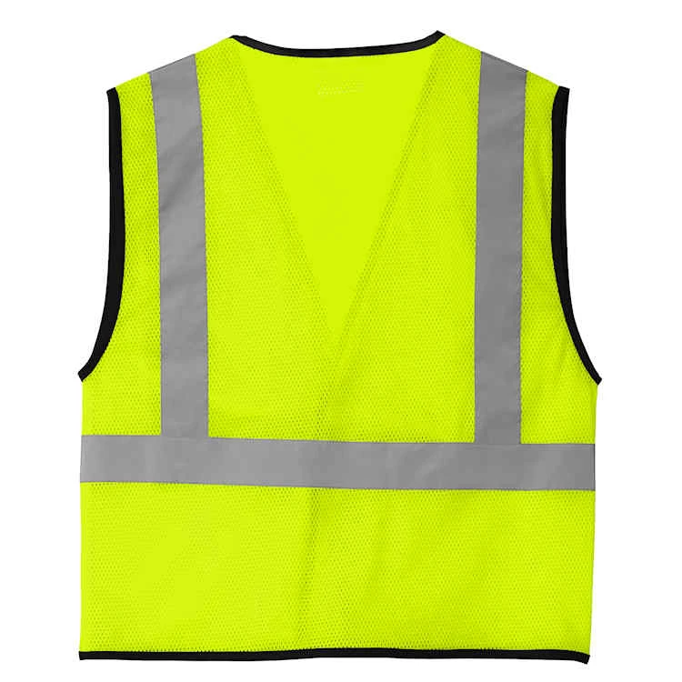 This affordable, breathable mesh vest meets ANSI 107 Class 2 requirements and has a pocket for jobsite necessities.