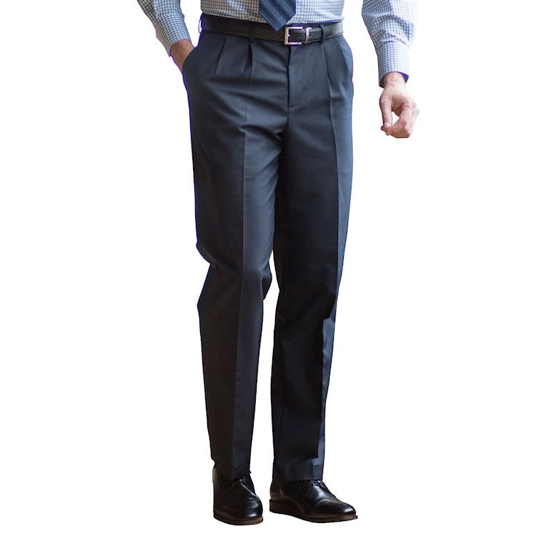 Pleated dress pant in a washable wool blend. Perfect for retail, healthcare or transportation image apparel programs. Indicate your inseam and the pant will be hemmed prior to shipping.
