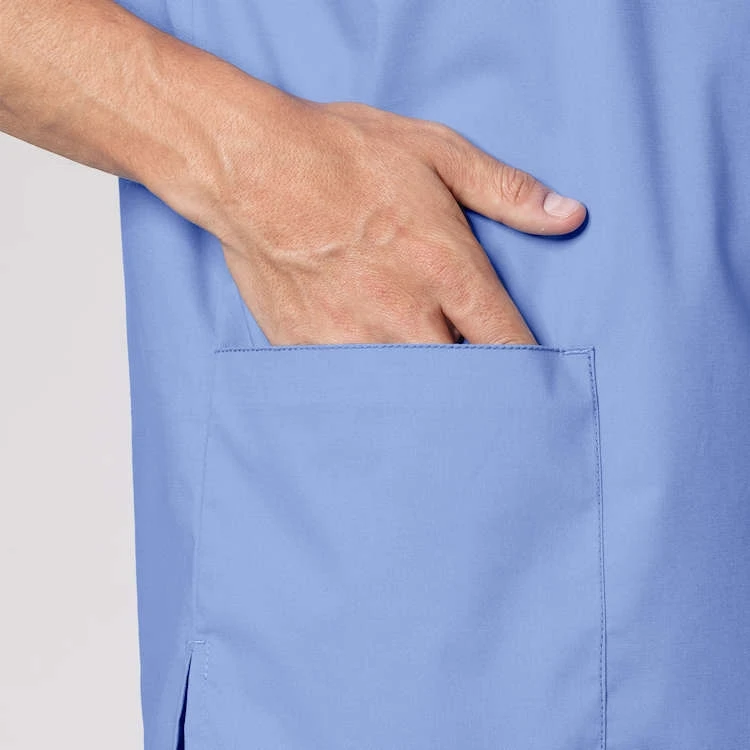 WonderWORK’s Men’s Multi-Pocket Top is designed to modernize the fit of one of the most popular styles. Special motion stretch and high thread-count fabric provide smooth, durable characteristics found in most expensive garments. The basic men’s top has been redefined with a modified v-neck and shoulder detail for a sporty, masculine look. The longer back length and vented sides were added for additional coverage. Discover the difference.