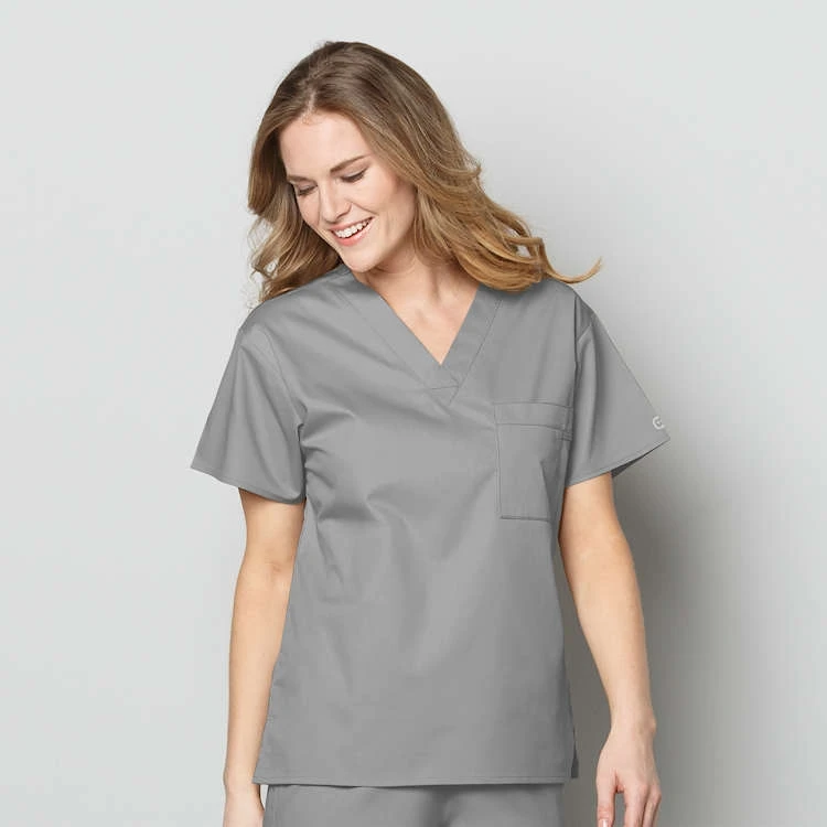 WonderWORK’s Unisex V-Neck top is designed to modernize the fit of one of the most popular styles. Special motion stretch and high thread-count fabric provide smooth, durable characteristics found in most expensive garments. Redesigned with the wearer in mind, this unisex style eliminates the unflattering ‘boxy’ look of scrubs and redefines it with a comfortable, professional look at an unbeatable price.Ā